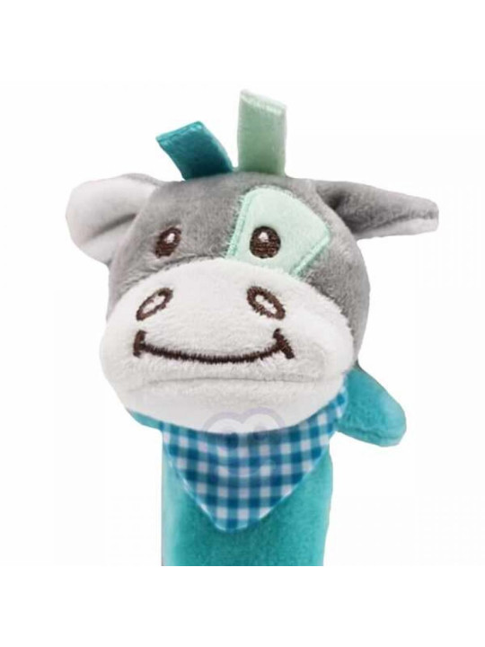 Zabawka jest wypełniona miękką wata i uszyta z delikatnego materiału, który jest przyjemny w dotyku, dzięki czemu doskonale nadaje się do małych rączek niemowląt. Pluszowa struktura sprawia, że osiołek może towarzyszyć dziecku nie tylko podczas zabawy, ale również snu.