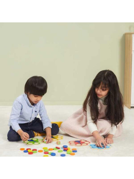 Drewniana Gra Dopasuj Kolory Pawi Ogon oferuje wiele korzyści dla rozwoju dziecka: