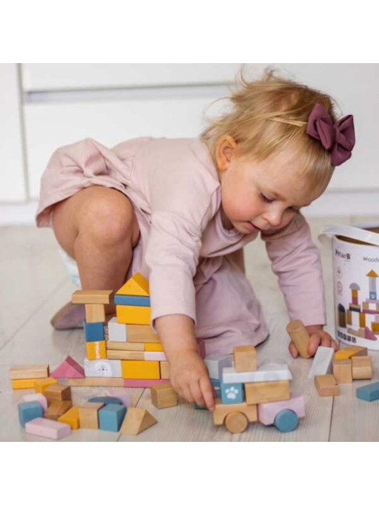 Zestaw drewnianych klocków w wiaderku - 60 elementów - Viga PolarB