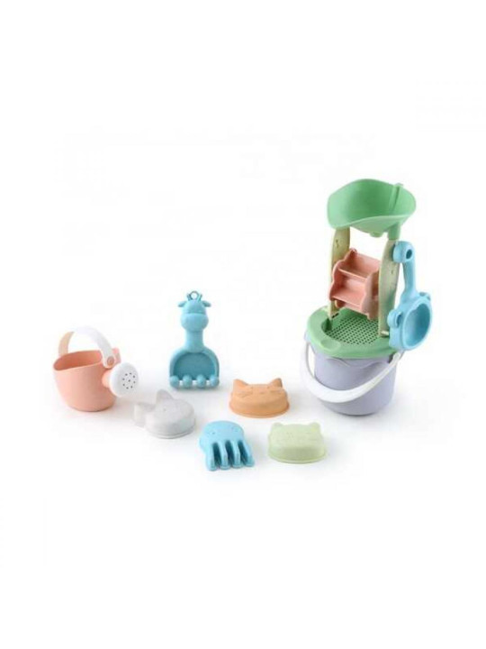 Zestaw do Piasku w Wiaderku WOOPIE GREEN z Kołowrotkiem - 9 Elementów - Biodegradowalny i Organiczny Materiał