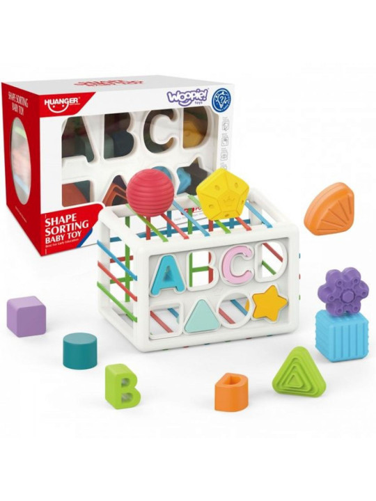 • Zestaw zawiera: kostka-sorter oraz 14 różnorodnych twardych klocków