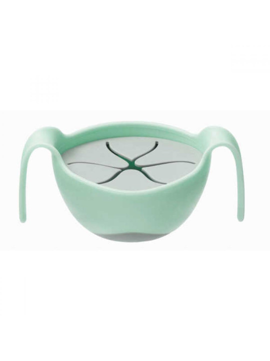 Praktyczne i innowacyjne rozwiązanie ułatwiające dziecku samodzielne spożywanie posiłków także tych o płynnej lub półpłynnej konsystencji. Poręczna miseczka z uchwytami posiada opatentowaną słomkę a także wkładkę zamieniającą ją w kubek niewysypek. Dodatkowo zawartość można zabezpieczyć pokrywka będącą elementem zestawu.