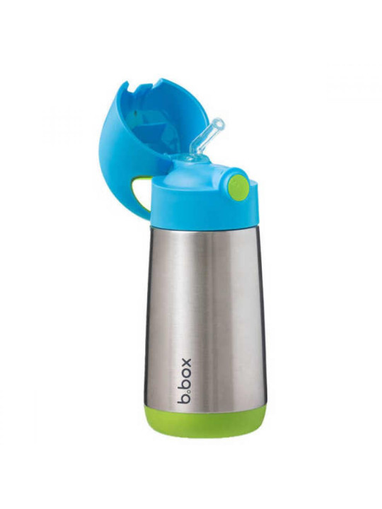 Innowacyjna termobutelka ze słomką marki b.box. Dzięki podwójnym ściankom ze stali nierdzewnej utrzymuje temperaturę do 6 godzin.