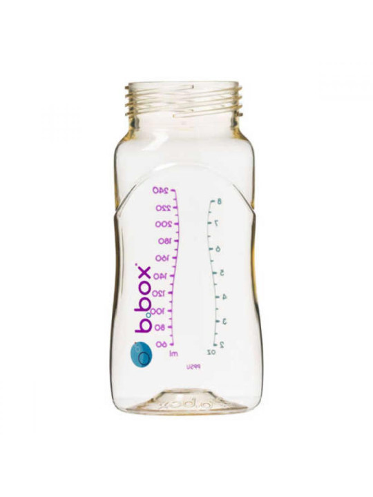 Butelka do karmienia b.box wykonana z tworzywa klasy medycznej odpornego na intensywne użytkowanie, mycie ręczne i w zmywarkach a także na sterylizowanie. W zestawie antykolkowy silikonowy smoczek dla niemowląt do drugiego miesiąca życia. Butelka ma ergonomiczny kształt i praktyczną podziałkę. Istnieje możliwość dokupienia dodatkowych akcesoriów.