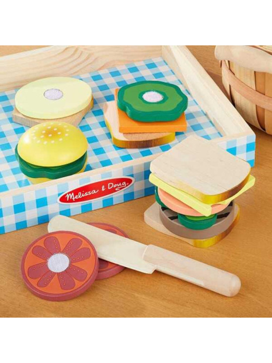 Dzieci uwielbiają naśladować dorosłych, a teraz mogą to robić w bezpieczny i kreatywny sposób dzięki zestawowi śniadaniowemu do robienia kanapek od Melissa & Doug. Wykonany z wysokiej jakości drewna, ten zestaw pozwala dzieciom na tworzenie własnych, niepowtarzalnych kompozycji kanapkowych.
