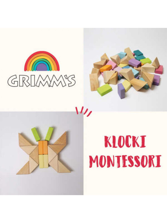 Drewniane zabawki Grimm's, które powstają od 1978 to prostota, piękno i uniwersalność oraz najwyższa jakość. Projektanci czerpią inspirację z pedagogiki Montessori i steinerowskiej. Kształtują drewno tak, by nie straciło nic ze swej wyjątkowej istoty i było jednocześnie zabawką, która pozwoli rozwijać się dziecięcej wyobraźni i kreatywności. Zabawką, która niczego nie narzuca, zostawiając dziecku przestrzeń do poznawania świata we własnym tempie, zgodnie z własnymi zdolnościami i zainteresowaniami.
