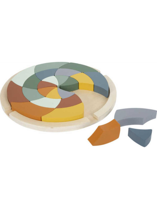 Układanka jest inspirowana metodą Montessori, co oznacza, że zachęca do kreatywnej zabawy oraz nauki poprzez działanie i odkrywanie. Dziecko może tworzyć unikalne wzory zarówno wewnątrz okrągłej ramki, jak i poza nią, co pozwala na nieograniczoną kreatywność i wyobraźnię.