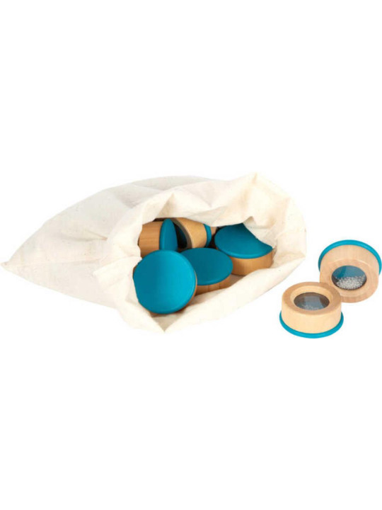Zestaw jest idealny dla dzieci oraz osób z zaburzeniami wzroku. Dzięki różnym rozmiarom pojemników oraz wypukłemu wieczku, elementy gry są łatwe do chwycenia. Każdy pojemnik zawiera różne materiały, takie jak drewniane kulki, metalowe kuleczki, plastikowe koraliki czy drewniane monety, co zapewnia różnorodne doświadczenia słuchowe.