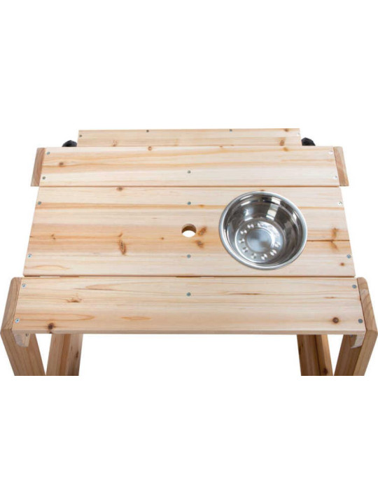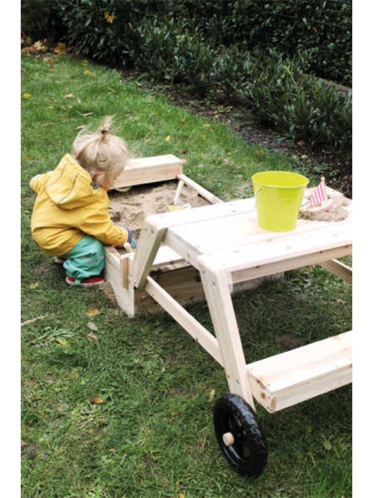 • Konstrukcja 3 w 1: piaskownica, stół do zabawy błotem, miejsce do siedzenia