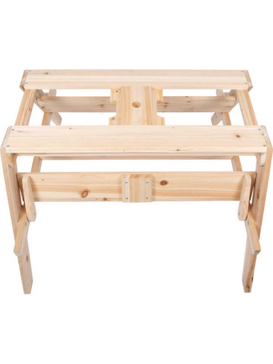 Ten unikalny stół pełni nie tylko rolę kuchni błotnej, ale również stołu piknikowego, stołu do rysowania czy stołu do majsterkowania. Pod zdejmowanymi blatami kryją się dwie wyjmowane miski o pojemności 3 litrów każda, idealne do zabawy z piaskiem, wodą i błotem.