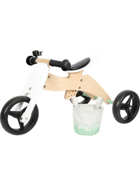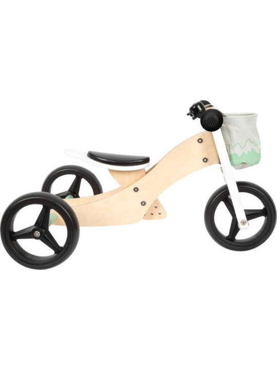 Wykonany z wytrzymałego drewna i syntetycznych materiałów, rowerek jest trwały i lekki, co jest istotne podczas zabawy na świeżym powietrzu. Opony EVA są niezniszczalne, miękkie i redukują wstrząsy, co sprawia, że jazda jest bardziej płynna i komfortowa.