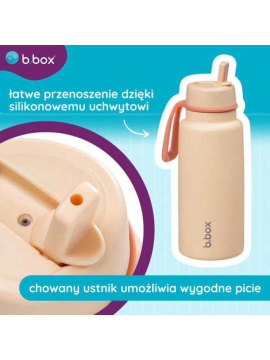 Nowość w kategorii bidonów dla dorosłych marki b.box. Dzięki innowacyjnej termobutelce już nie musisz martwić się o zapas picia podczas codziennych aktywności. Butelka z chowanym ustnikiem i silikonową rączką została zaprojektowana z myślą o większym wysiłku i dłuższych wycieczkach. Duża pojemność 1l sprawia, że nawodniasz odpowiednio organizm w ciepłe i zimne dni. Dzięki potrójnie izolowanym ściankom ze stali nierdzewnej Twój napój pozostanie zimny do 46 godzin! Odchylany dzióbek jest praktyczny i wygodny, a elastyczny uchwyt pozwala Ci na swobodne przenoszenie i trzymanie jedną ręką. Wlew jest szeroki, by umożliwić Ci łatwe napełnianie wodą i np. kostkami lodu. Niezastąpiony w podróży, na siłowni czy w domu.