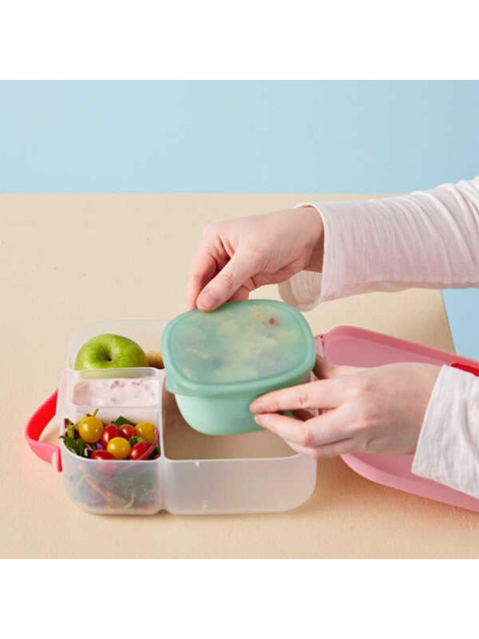 Multifunkcyjny pojemnik od renomowanej marki b.box. Został zaprojektowany tak, aby idealnie pasował do przegródki na kanapki w lunchboxie lub do samodzielnego użytku. Miseczka jest zamykana pokrywką, która pozostaje szczelna, gdy jest używana z zimnymi potrawami. Najlepiej sprawdzi się do sałatek, sosów i innych zimnych przekąsek. To pudełeczko, które z powodzeniem można przechowywać w lodówce i zamrażarce. Dzięki temu ułatwia planowanie posiłków na następny dzień do pracy czy szkoły. Silikonowy narożnik ułatwia otwieranie pokrywki np. przed podgrzaniem w mikrofalówce. To sprytne rozwiązanie, które pozwoli jeszcze bardziej urozmaicić posiłki całej rodzinie.