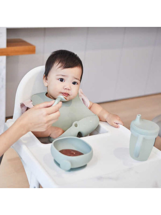 Silikonowa miska b.box  kolorze szałwiowym z innowacyjną pokrywką to idealne rozwiązanie dla rodziców, którzy chcą wspierać swoje dzieci w zdobywaniu nowych umiejętności. Ergonomiczny kształt i przyssawka sprawiają, że miska jest stabilna, a głębokie krawędzie ułatwiają dziecku nabieranie jedzenia. Unikalny uchwyt zapewnia bezpiecznie trzymanie i większą kontrolę podczas karmienia przez rodzica.