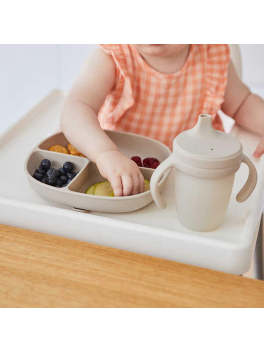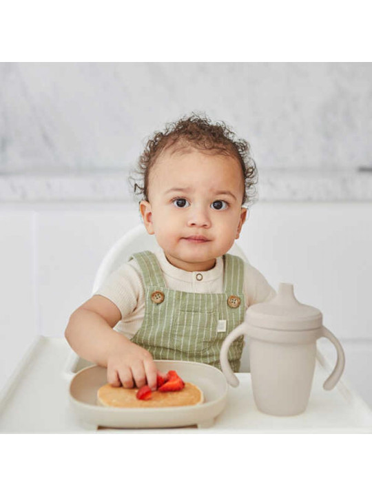 • Świetne rozwiązanie: kubek rośnie razem z dzieckiem i dostosowuje się do etapów rozwoju i samodzielności. Gdy dziecko będzie gotowe, aby przejść do kolejnego etapu picia, wystarczy ściągnąć pokrywkę i uchwyty.