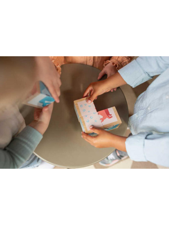 • Każda ścianka klocka zawiera część ilustracji do dopasowania, co rozwija umiejętność logicznego myślenia.