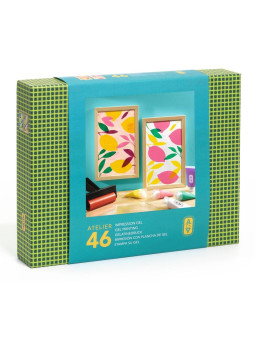 Atelier Grands Augustins - kolekcja zestawów artystycznych dla dorosłych - prezentuje technikę druku żelowego. Odkryj sztukę tworzenia wielowarstwowych obrazów, we własnym tempie i w domowym zaciszu. Zestaw Atelier 46 zawiera wszystkie niezbędne narzędzia i akcesoria do stworzenia własnego dzieła sztuki za pomocą żelowej podkładki i farb. Technika polega na naklejaniu szablonu ze wzorem na żelową płytkę i pokrywaniu go farbą za pomocą wałka. Kolejne warstwy nakłada się w ten sam sposób jedna po drugiej, a następnie wszystko przenosi się na papier, uzyskując unikatowy rysunek. Żelowa podkładka jest wielorazowego użytku, dzięki czemu aktywność można powtarzać wielokrotnie.    W zestawie znajduje się kod QR, który prowadzi do video tutorialu,objaśniającego technikę krok po kroku. Autentyczne profesjonalne narzędziazapewniają precyzję ruchów. Drewniana obręcz z zawieszką znajduje się wzestawie, dzięki czemu powstałe dzieła można od razu wyeksponować. Wszystkie akcesoria są zapakowane w pięknie ilustrowane pudełko doprzechowywania całej zawartości, w momencie niekorzystania z zestawu. Nazwa kolekcji AGA (Atelier Grands Augustins) nawiązuje do historycznejlokalizacji firmy Djeco, która swoje pierwsze kroki stawiała w paryskiejdzielnicy Saint-Germain-des-Prés, kilka kroków od studia Picassa. Zestawy artystyczne dla dorosłych od Djeco to odpowiedź na rosnący napopularności trend zabawek kidult oraz filozofii well-being. Samodzielne wykonywanie zadań artystycznych poprawia zdolność koncentracji, wycisza i daje poczucie głębokiego relaksu. Jest to doskonały sposób na spędzenie długich zimowych wieczorów, w oderwaniu od ekranów. Malowanie, wyszywanie lub układanie mozaik to świetny trening manualny. Elementy zestawu zostały wykonane z papieru i kartonu posiadającego certyfikat FSC®. Zawartość:- 1 silikonowa żelowa podkładka (235 x 150 mm),- 1 wałek,- 5 tubek z farbą po 30 ml,- 10 arkuszy do zadrukowania,- 4 arkusze z szablonami odpornymi na rozerwanie,- 2 drewniane ramki, - Ulotka i karta z kodem QR, prowadzącym do przewodnika video, prezentującego aktywność. Wiek: 15-99 lat Wymiary produktu: 15 x 23,5 x 0,5 cmWymiary opakowania: 24,5 x 31 x 5,5cm