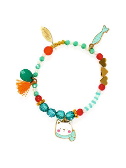 Kolekcja PLUME to zestawy biżuterii i akcesoriów do włosów od marki Djeco. Wykonane z wysokiej jakości materiałów ozdoby ucieszą niejedną małą elegantkę. Akcesoria są podzielone tematycznie według sześciu różnych motywów. Temat przewodni KOTKI przedstawia bransoletkę HANAE. Posiada emaliowane charmsy ze stali nierdzewnej w kształcie kotka i rybki oraz lekkie i wytrzymałe akrylowe koraliki w odcieniach błękitu i czerwieni. Złote dodatki i delikatne wykończenie bransoletki dodadzą dziecięcemu nadgarstkowi nuty elegancji. Podwójna elastyczna gumka jest odporna na zerwanie i na tyle rozciągliwa, aby dziecko swobodnie mogło założyć bransoletkę na rękę bez konieczności posiadania zapięcia. Do każdej bransoletki dołączona jest zawieszka w kształcie listka z nazwą kolekcji. Zawartość:- 6 bransoletek na osobnych kartonowych i ilustrowanych zawieszkach Wiek: 3+ Średnica produktu: 5 cm Wymiary opakowania: 5,5 x 14 x 1 cm Opakowanie zbiorcze: 6 szt.