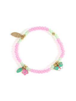 Kolekcja PLUME to zestawy biżuterii i akcesoriów do włosów od marki Djeco. Wykonane z wysokiej jakości materiałów ozdoby ucieszą niejedną małą elegantkę. Akcesoria są podzielone tematycznie według sześciu różnych motywów. Temat przewodni OGRÓD przedstawia bransoletkę Lila. Posiada emaliowane charmsy ze stali nierdzewnej w kształcie motylka i kwiatuszka oraz lekkie i wytrzymałe akrylowe koraliki w odcieniach różu i zieleni. Delikatne wykończenie bransoletki doda dziecięcemu nadgarstkowi nuty elegancji. Podwójna elastyczna gumka jest odporna na zerwanie i na tyle rozciągliwa, aby dziecko swobodnie mogło założyć bransoletkę na rękę bez konieczności posiadania zapięcia. Do każdej bransoletki dołączona jest zawieszka w kształcie listka z nazwą kolekcji. Zawartość:- 6 bransoletek na osobnych kartonowych i ilustrowanych zawieszkach Wiek: 3+ Średnica produktu: 6 cm Wymiary opakowania: 5,5 x 14 x 1 cm Opakowanie zbiorcze: 6 szt.