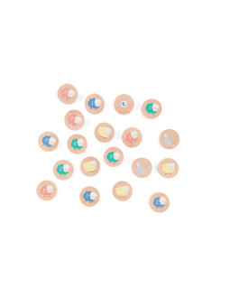 Zestaw to 19 krążków 4 x 4 x 1,5 cm, materiał: drewno.