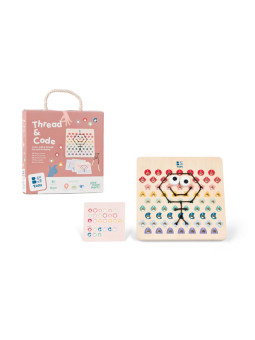 Przeplatanka jest znaną i lubianą kreatywną zabawą przez dzieci i ich rodziców. Na dużej, drewnianej tablicy 22 x 22 cm umieszczono otwory w równych odstępach. Przy pomocy sznurka zakończonego specjalnym patyczkiem dzieci zaplatają go zgodnie ze wzorem kodowania. Tworzą kształty i obrazy. Mogą korzystac z kart pracy kodowania albo tworzyć dowolnie. Młodsze dzieci, które jeszcze nie będą potrafiły odwzorować wzoru z karty pracy, mogą przekładać sznurek.