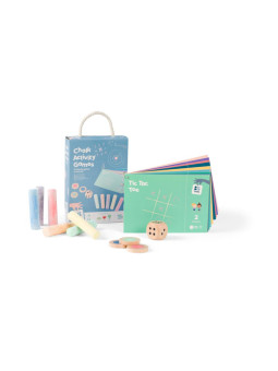 W zestawie znajdują się: 6 x kreda 10 x 2,5 cm, kostka 4 x 4 x 4 cm, 3 żetony 5 x 5 x 0,8 cm, 10 kart 21 x 15 cm