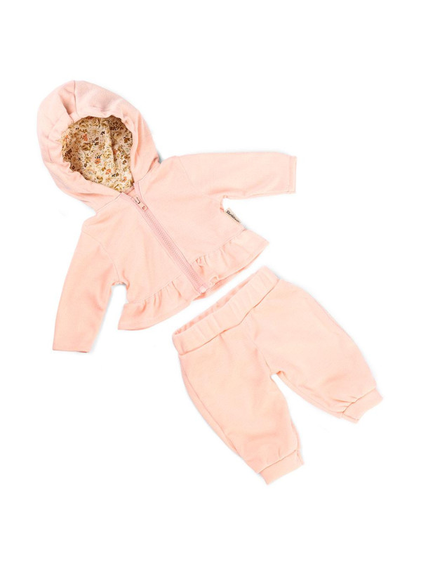 Ten zestaw zachwyca od pierwszego wejrzenia. Cieplutki dres z dżerseju jest idealnym elementem garderoby każdej lalki, która lubi wygodę i sportowy styl. Kurtka jest zapinana na suwak, a jej kaptur od wewnątrz zdobi tkanina z motywem kwiatowym. Bufiaste spodenki zapewniają wygodę noszenia. Całość w przeuroczym kolorze, od którego nie sposób oderwać wzroku. Słodko! Łącz dowolnie akcesoria i ubranka dla lalek marki Skrållan i baw się tworząc nowe stylizacje. Szwedzki design i wysoka jakość wykonania z dbałością o najmniejsze szczegóły są gwarancją dobrej zabawy dla dzieci w każdym wieku. Akcesoria sprzyjają rozwojowi kreatywności i rozwijają wyobraźnię.