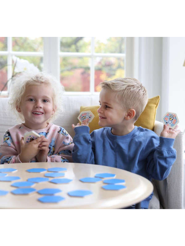 Układaj na stole drewniane kafelki obrazkiem w dół i trenuj swoją pamięć! Urocza gra memory zawiera 38 kafelków w kształcie sześcianu (19 par) z oryginalnymi ilustracjami z kreskówki Bluey. Ta zabawka rozwija pamięć, skupienie oraz zdolność do planowania Twojego dziecka i zaprasza całą rodzinę do zabawy oraz zdobywania nowych doświadczeń w świecie przygód kochanej przez dzieci Bluey. Komplet został zaprojektowany w Szwecji i starannie wykonany z drewna pochodzącego ze zrównoważonych zasobów FSC. Zabawka jest odpowiednia dla dzieci od 3 roku życia.