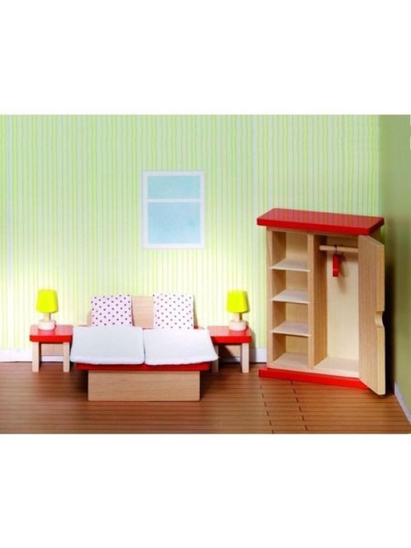 Drewniane mebelki do domku dla lalek - sypialnia zabawki dla dzieci goki - drewniany zestaw zabawek, zabawa lalkami, zabawka dla