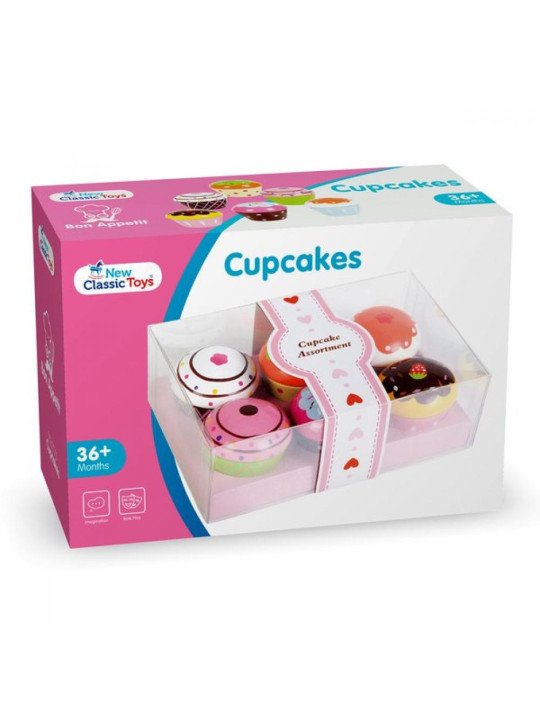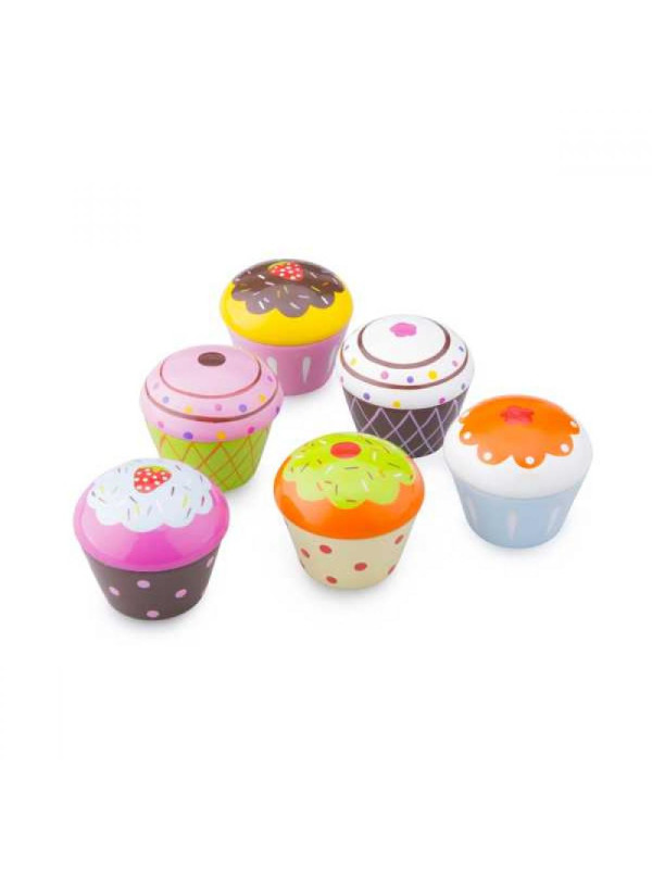 Drewniane słodycze do zabawy dla dzieci - babeczki pakowane w prezenty - 6 szt - New Classic Toys - drewniana zabawka - zabawa