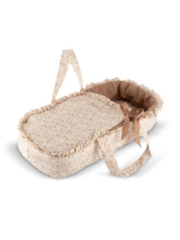 Nosidełko z kolekcji Teresa zostało zaprojektowane z myślą o maksymalnej wygodzie zarówno dla lalki, jak i dla dziecka. Wykonane z miękkiej i trwałej pianki, okrytej jasnobeżową, bawełnianą tkaniną w uroczy kwiatuszkowy wzór. Wnętrze gondoli w kolorze kakaowym. Szyku dodają: finezyjne kakaowe falbanki oraz eleganckie kokardki.