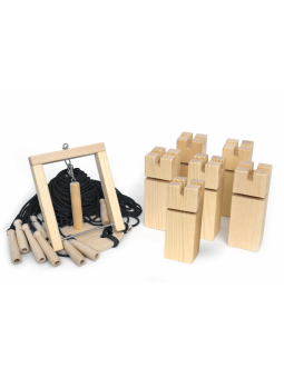 Gra integracyjna Wieża współpracy HARD czarna Wieża współpracy to emocjonująca gra zespołowa, która rozwija umiejętności współpracy, komunikacji i koordynacji ruchowej. Zadaniem uczestników jest zbudowanie stabilnej wieży z drewnianych klocków przy pomocy dźwigu sterowanego za pomocą sznurków z rączkami. Gra doskonale sprawdza się w integracji grupowej, szkoleniach integracyjnych oraz edukacji dzieci i młodzieży.  Jest to trudniejsza wersja popularnej gry wieży - poprzez dodanie drewnianych rączek na końcach sznurków, gra wymaga większej precyzji ruchów.  Zasady gry:  Liczba graczy: 6-24 Czas rozgrywki: ok. 10-30  min Stwórz drużynę z zebranych uczestników i przekaż jej jeden dźwig oraz 6 klocków Rozłóż klocki losowo na podłodze. Każdy gracz trzyma jeden lub dwa sznurki dźwigu. Sznurkami należy wspólnie unieść klocki tak, by powstała z nich wieża. Wieża współpracy to doskonała gra integracyjna dla grup w każdym wieku. Dzięki prostym zasadom i wielu możliwościom modyfikacji rozgrywki, sprawdza się zarówno w edukacji, jak i środowisku biznesowym, jako narzędzie integracyjne. Korzyści z gry: Wzmacnia umiejętność współpracy - sukces zależy od dobrej komunikacji i wspólnych działań Rozwija zdolności motoryczne i precyzję ruchów - uczestnicy uczą się kontrolować swoje ruchy i kierować, koordynować działania z innymi Uczy komunikacji i strategii - gracze muszą jasno przekazywać swoje zamiary i słuchać współpracowników Doskonale integruje grupę - świetny sposób na przełamanie lodów w nowych zespołach Zawartość zestawu: 6 drewnianych klocków 1 dźwig wyposażony w 24 linki (długość 1,75 m, grubość aż 5 mm) 24 drewniane rączki: długość 11 cm instrukcja obsługi czarny pokrowiec/ torba ułatwiająca transport Parametry: Wymiary klocków: wysokość ok. 17 cm, szerokość ok. 6 cm Wymiary koła: średnica 20 cm Wymiary rączki: długość: 11 cm Waga 1 klocka: ok 0,26 kg Waga w opakowaniu: 3300 g Kolor linki: czarny UWAGA: produkt przeznaczony wyłącznie do użytku przez osoby dorosłe lub dzieci pod ich bezpośrednim nadzorem. Wyrób rzemieślniczy. Produkt wykonany z drewna. Nie zawiera szkodliwych substancji takich jak farby, lakiery czy kleje. Nie należy stosować silnych środków myjących. Nie przechowywać w wilgotnych warunkach. Cena za zestaw.