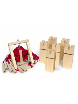 Gra integracyjna Wieża współpracy HARD czerwona Wieża współpracy to emocjonująca gra zespołowa, która rozwija umiejętności współpracy, komunikacji i koordynacji ruchowej. Zadaniem uczestników jest zbudowanie stabilnej wieży z drewnianych klocków przy pomocy dźwigu sterowanego za pomocą sznurków z rączkami. Gra doskonale sprawdza się w integracji grupowej, szkoleniach integracyjnych oraz edukacji dzieci i młodzieży.  Jest to trudniejsza wersja popularnej gry wieży - poprzez dodanie drewnianych rączek na końcach sznurków, gra wymaga większej precyzji ruchów.  Zasady gry:  Liczba graczy: 6-24 Czas rozgrywki: ok. 10-30  min Stwórz drużynę z zebranych uczestników i przekaż jej jeden dźwig oraz 6 klocków Rozłóż klocki losowo na podłodze. Każdy gracz trzyma jeden lub dwa sznurki dźwigu. Sznurkami należy wspólnie unieść klocki tak, by powstała z nich wieża. Wieża współpracy to doskonała gra integracyjna dla grup w każdym wieku. Dzięki prostym zasadom i wielu możliwościom modyfikacji rozgrywki, sprawdza się zarówno w edukacji, jak i środowisku biznesowym, jako narzędzie integracyjne. Korzyści z gry: Wzmacnia umiejętność współpracy - sukces zależy od dobrej komunikacji i wspólnych działań Rozwija zdolności motoryczne i precyzję ruchów - uczestnicy uczą się kontrolować swoje ruchy i kierować, koordynować działania z innymi Uczy komunikacji i strategii - gracze muszą jasno przekazywać swoje zamiary i słuchać współpracowników Doskonale integruje grupę - świetny sposób na przełamanie lodów w nowych zespołach Zawartość zestawu: 6 drewnianych klocków 1 dźwig wyposażony w 24 linki (długość 1,75 m, grubość aż 5 mm) 24 drewniane rączki: długość 11 cm instrukcja obsługi czarny pokrowiec/ torba ułatwiająca transport Parametry: Wymiary klocków: wysokość ok. 17 cm, szerokość ok. 6 cm Wymiary koła: średnica 20 cm Waga 1 klocka: ok 0,26 kg Waga w opakowaniu: 3300 g Kolor linki: czerwony UWAGA: produkt przeznaczony wyłącznie do użytku przez osoby dorosłe lub dzieci pod ich bezpośrednim nadzorem. Wyrób rzemieślniczy. Produkt wykonany z drewna. Nie zawiera szkodliwych substancji takich jak farby, lakiery czy kleje. Nie należy stosować silnych środków myjących. Nie przechowywać w wilgotnych warunkach. Cena za zestaw.