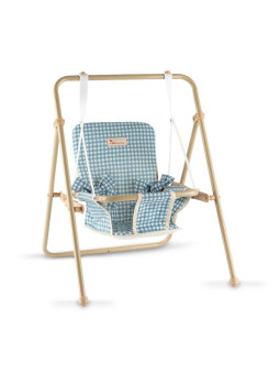 Piękna i funkcjonalna huśtawka cenionej hiszpańskiej marki ASI została zaprojektowana dla lalek o wysokości od 36 do 46cm. Wzbogaca ona popularną kolekcję akcesoriów Noel. Zachwyca ponadczasowy wzór w biało-niebieską kratkę. Huśtawka ta jest idealnym dodatkiem uzupełniającym pomysłową zabawę najmłodszych. Pozwala im tworzyć niezapomniane historie i spędzać wyjątkowe i niezapomniane chwile z ulubionymi towarzyszami zabaw: bobasami, lalkami klasycznymi lub maskotkami.