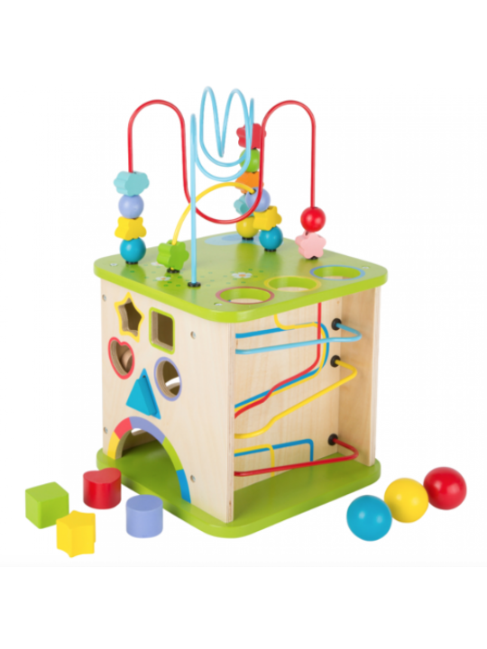 Wielofunkcyjna kostka oferuje pięć powierzchni do zabawy, które dostarczają dziecku różnorodnych i stymulujących wyzwań.