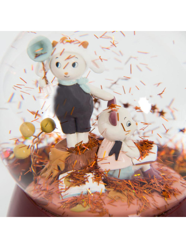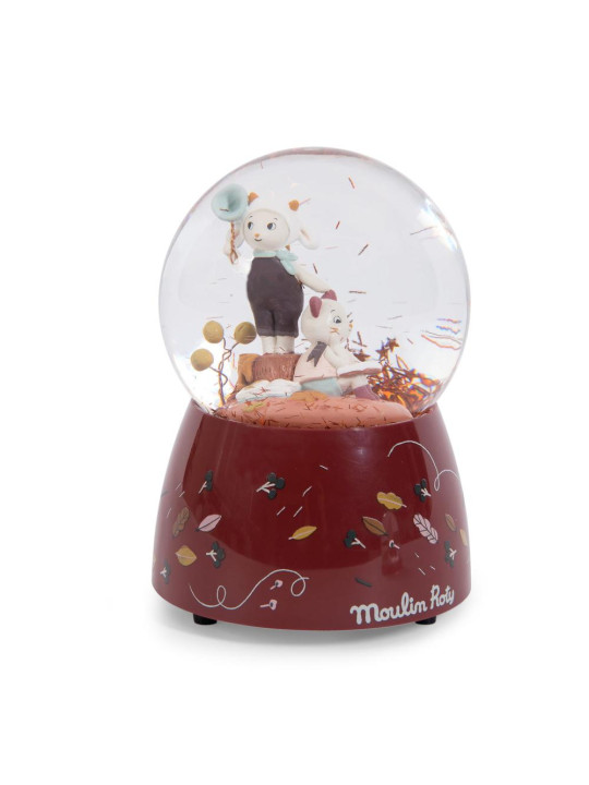 Piękna kula śnieżna z pozytywką z serii "Apres la pluie"od Moulin Roty, oczaruje każde dziecko. W kuli pod deszczem konfetti znajdują się sympatyczne postacie zwierzątek. Ładny element dekoracyjny do pokoju Twojego dziecka. Pozytywkę wprawia się w ruch poprzez nakręcenie korbki znajdującej się w podstawie kuli. Wymiary: średnica 11 cm, wysokość 13,5 cm.  Materiały: tworzywo sztuczne, żywica, woda destylowana.