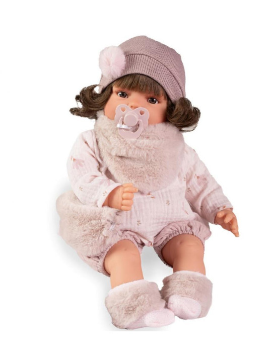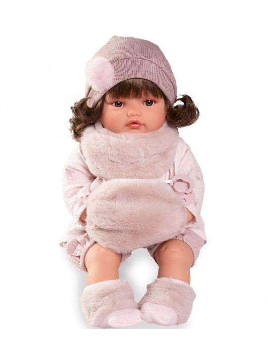 Lalka Beni płacząca z mufką Antonio Juan 16383 - Dziewczynka, 42 cm, Brzuszek: Miękki, Kolor oczu: Brązowy, Kolor włosów: