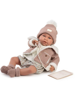 Lalka Daniela Mi Primer Reborn w futerku Antonio Juan 81399 - 52 cm, Brzuszek: Miękki, Kolor oczu: Niebieski