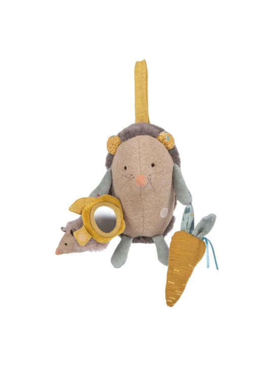 Maskotka aktywizująca jeżyk z kolekcji Trzy Małe Króliczki zaciekawi każdego maluszka. Poszczególne elementy zabawki wydają różne ciekawe dla małego uszka dźwięki. Dodatkowe przymocowane do przytulanki elementy takie jak lusterko, jeżyk dzidziuś czy pluszowa marchewka będą dodatkowym źródłem zabawy dla dziecka. Miły w dotyku jeżyk czeka na wspólną zabawę. Różne tekstury i materiały zapewnią dziecku szereg doznań sensorycznych. Zabawkę można zawiesić, dzięki specjalnemu uchwytowi. Wiek: 0+ Wymiary: 35 cm Materiał: bawełna, poliester, plastik Można prać w pralce w 30 stopniach w delikatnym cyklu, nie suszyć w suszarce bębnowej.