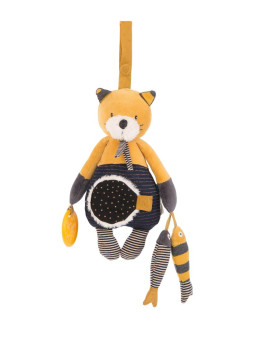 Maskotka aktywizująca kotek LULU Les Mustaches Moulin Roty.Kolekcja maskotek wąsaczów od Moulin Roty: wesoły zespół muzyków kotów! Ta miękka maskotka kotek LULU ma wiele talentów: szeleszczący  papier, dźwięk grzechotki i gryzak idealny do łagodzenia bólu dziąseł. Ta sensoryczna zabawka będzie idealnym towarzyszem zabawy i przytulania. Zabawka pakowana jest w ozdobną papierową kopertę, ilustrowaną unikalnym wzorem od Moulin Roty. Wiek +0 lat Wymiary: 24 cm. Materiały: bawełna, poliester, elastan, poliamidPielęgnacja : można prać w pralce w 30 stopniach w delikatnym cyklu, nie suszyć w suszarce Produkt posiada oznaczenie CE.