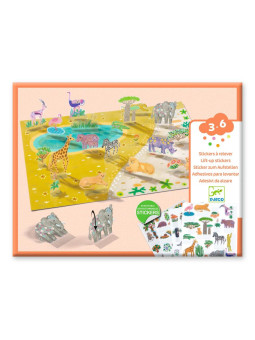 wielokrotnego użytku od Djeco. Dzieci naklejają naklejki ze zwierzątkami i