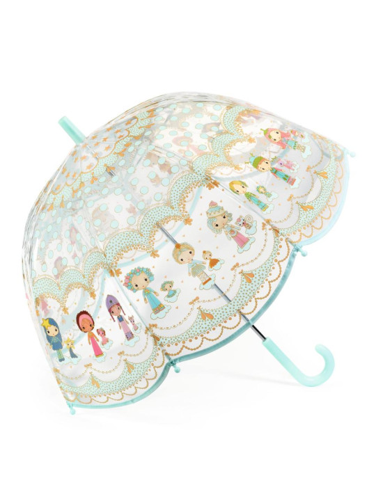 Laleczki Tinyly zdobią parasol marki Djeco! Znane i lubiane bohaterki tego bajkowego świata wraz ze swoimi towarzyszami od dziś chronią maluchy przed deszczem. Parasolka jest utrzymana w miętowo-złotej kolorystyce. Brzegi materiału przeciwdeszczowego zostały wykończone kolorową lamówką. Przezroczysty wzór pozwala dzieciom widzieć, gdzie idą. W celu zwiększenia bezpieczeństwa parasolka została wyposażona w bezpieczny system otwierania, chroniący palce przed skaleczeniem, a zakończenia prętów są w formie plastikowych kulek. Parasol ma stelaż z włókna szklanego - miękki i zarazem wytrzymały. Parasol po rozłożeniu ma wymiary 68 (wysokość) x 70 cm (średnica). Opakowanie zbiorcze: 12 szt.