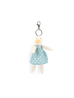 przywieszkę do plecaka lub torebki. Ubrana jest w jasnoniebieską sukienkę w