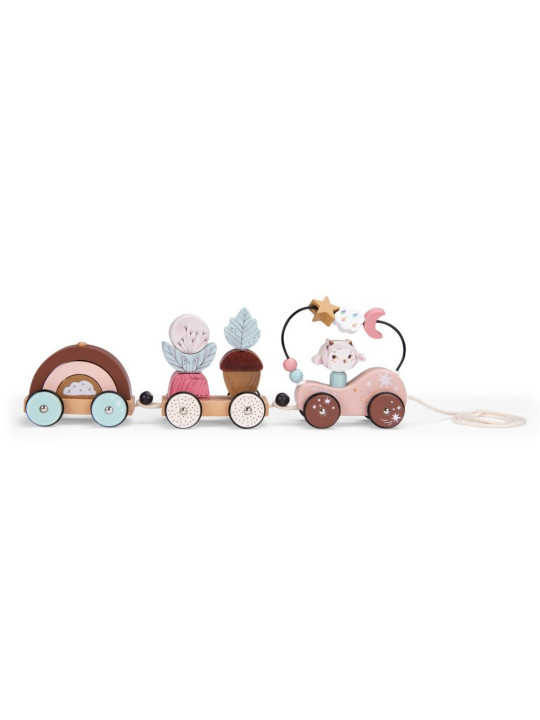 Zabawka aktywizująca 2 w 1: pociąg do ciągnięcia wraz z układanką. Owieczka