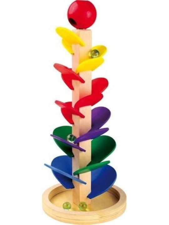 Po umieszczeniu szklanej kulki na szczycie czerwonej drewnianej kuli, zaczyna ona swoją podróż w dół, przechodząc przez kolejne poziomy listków w różnych kolorach. Listki te wydają dźwięki, tworząc harmonijną melodię przechodzącą z wyższych tonów na niższe.