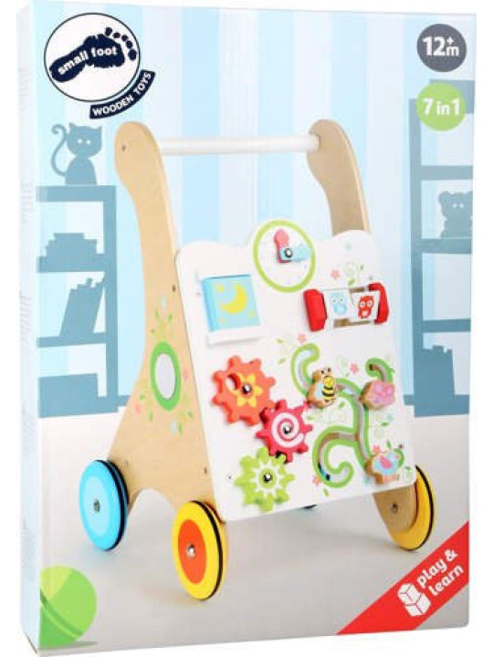 Drewniany chodzik wyróżnia się żywymi i pastelowymi kolorami oraz uroczymi motywami zwierzęcymi i kwiatowymi. Estetyczny wygląd chodzika sprawi, że będzie to ulubiona zabawka każdego malucha. Kolorowe elementy, takie jak przesuwane zwierzątka, obrotowe trybiki i ruchome sowy, dostarczą dziecku mnóstwo radości i zabawy.
