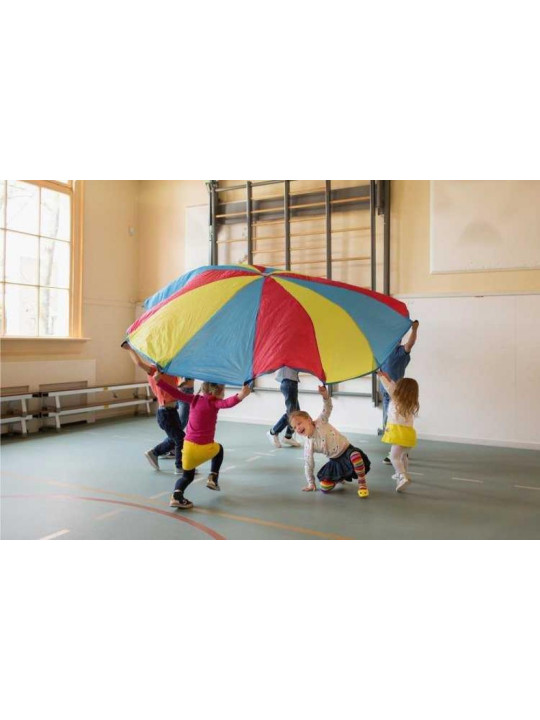 • Rozwija współpracę – dzieci uczą się współdziałać, aby utrzymać piłki na chustce.