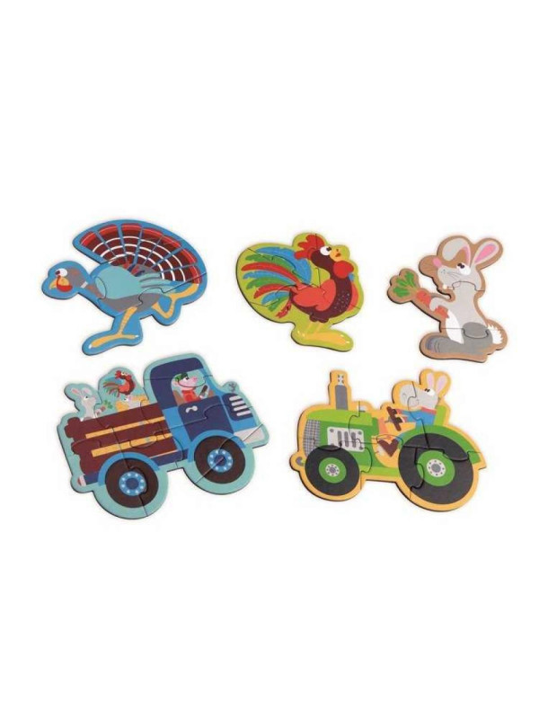 Pierwsze puzzle Farma to wyjątkowy zestaw dla dzieci rozpoczynających swoją przygodę z puzzlami. Zestaw zawiera różnorodne zwierzęta i pojazdy, które można spotkać na farmie.