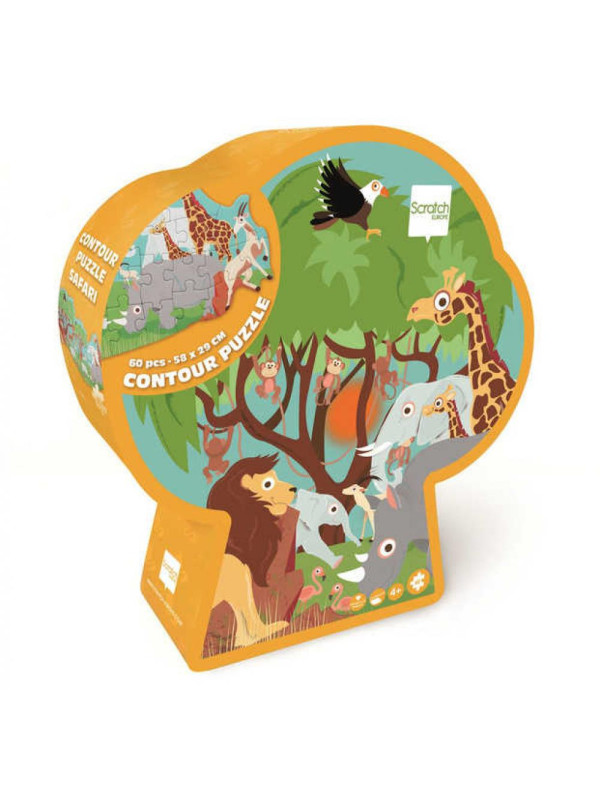Scratch, Puzzle konturowe Safari 60 elementów - Idealna zabawka dla dzieci od 4 lat