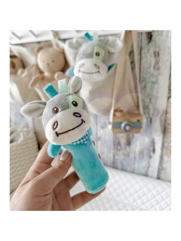 Zabawka jest wyposażona w piszczałkę, która wydaje dźwięk przy ściśnięciu trzonu, co zapewnia dodatkową atrakcję dla dziecka. Dodatkowo posiada element szeleszczący, co pobudza zmysły i stymuluje rozwój sensoryczny dziecka.